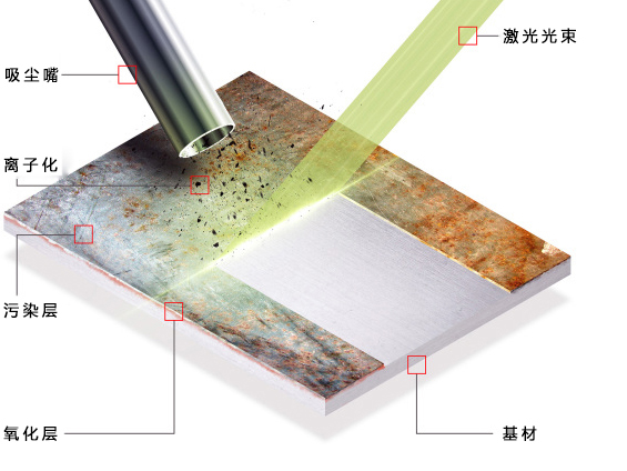 激光清洁技术是使用高频短脉冲激光作为工作介质的高端清洁解决方案。当激光照射到被清洁物体表面时,其表面的所有附着物、污垢层(油污、锈斑以及涂层等)和下面的任何氧化物将吸收激光能量并从被清洁物体表面蒸发或剥离,不留下残余物。衬底(主要是金属)也不会吸收能量,不会损伤被清洁物体的表面,不会降低其表面光洁度。